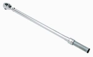 3/4" Dr Micro-Adjustable Metal Handle Torque Wrench - 100-600 ft-lb.The metal handle series offers the user a rugged, industrial strength torque wrench able to withstand the rigors of professional use. Handles are lightly knurled for tough, non-slip grip. It is always a good idea to choose a torque wrench in which the desired torque setting falls within the middle range of the wrench. Dual scale ft. pounds / Nm. Fast, accurate and easy to set. Easy-to-read laser marked scales Pull lock ring down and turn handle to adjust reading. Micrometer "clicker" torque wrenches feature a distinct breaking action when the set torque is reached. The breaking actions and clicking noise is greatest at the upper part of scale. Supplied with certificate of calibration traceable to NIST. Rugged for industrial use. Accuracy ± 3% Meets or exceeds ASME B107.14M-1994, ISO 6789 Standards. Range: 100-600 ft. lb. (140-800 Nm Incr.: 5 ft. lb. (5 Nm) Sq. Drive Size: 3/4" Head Style: Ratchet Length: 43" Weight: 11 lbs. Shipped in a plastic storage box. A 25% restocking fee is charged to return this item (unused).